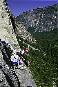 Mark Wellman, tired but happily resting in another hanging bivouac